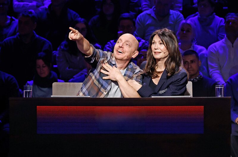 Rateteam-Kapitän Bernhard Hoëcker (l.) und Schauspielerin Iris Berben (r.).Bild: © ARD/NDR/UFA SHOW & FACTUAL/Morris Mac Matzen