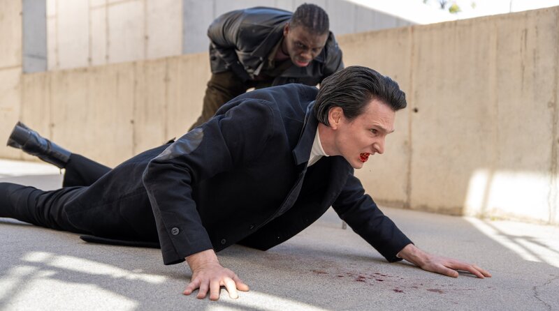 • Angeschossen: Quito (Sabin Tambrea, liegend) mit seinem Helfer Fayez (Deryl Kenfack).