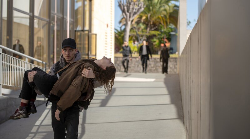 • Kai (Julius Gause, li.) versucht Vera (Emily Kusche) vor Quito und seinen Helfern zu retten.