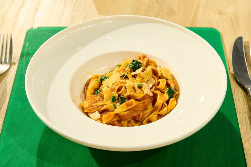 Leibgericht: Tagliatelle mit Tomatensauce, Basilikum-Öl und Parmesan-Crunch von Marcel HöflichBild: © ZDF und Gunnar Nicolaus