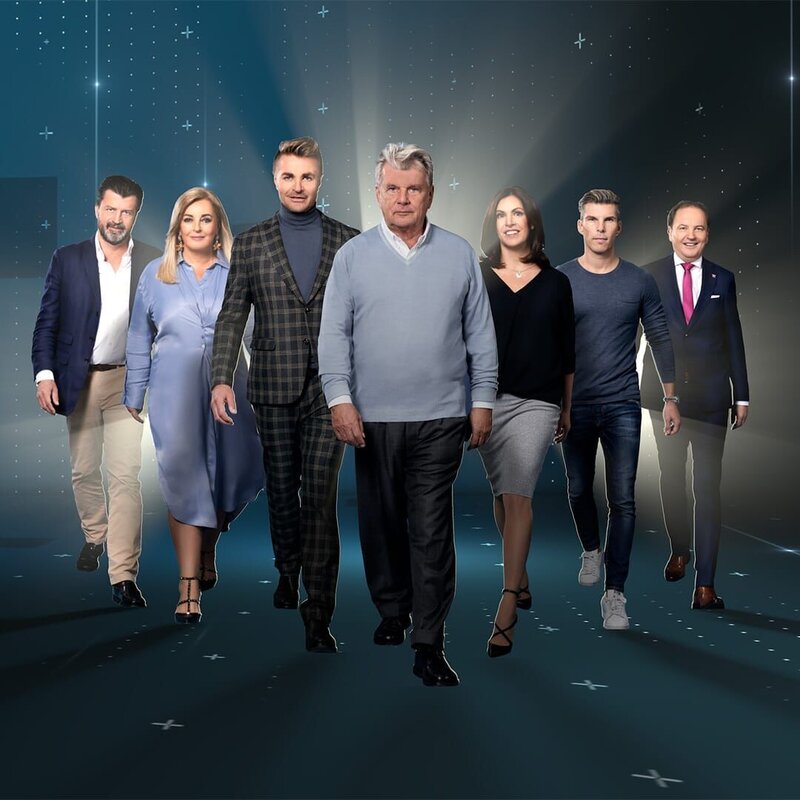 (v.l.n.r.) Martin Rohla; Dagmar Grossmann; Leo Hillinger; Hans Peter Haselsteiner; Katharina Schneider; Florian Gschwandtner; Bernd HintereggerBild: © PULS 4 / Gerry Frank