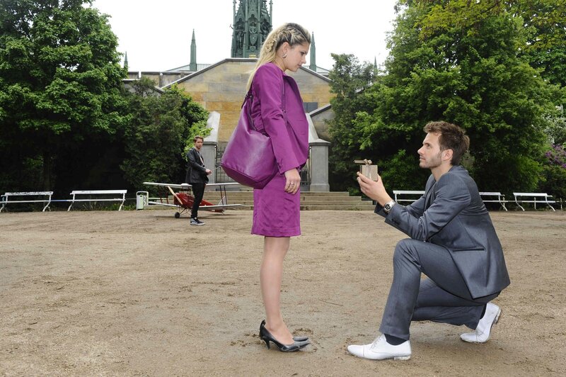 Mia (Josephine Schmidt, l.) ist völlig überfordert von Enriques (Jacob Weigert, r.) Heiratsantrag.