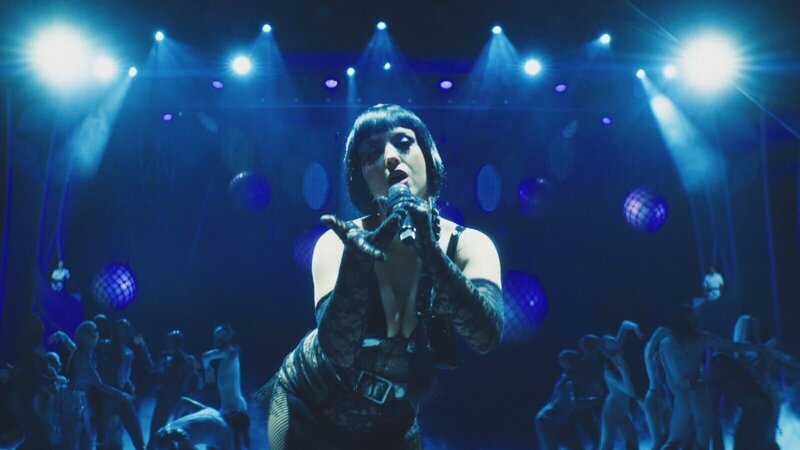 Eine Sängerin fesselt das Publikum im blauen Licht der Palastbühne.