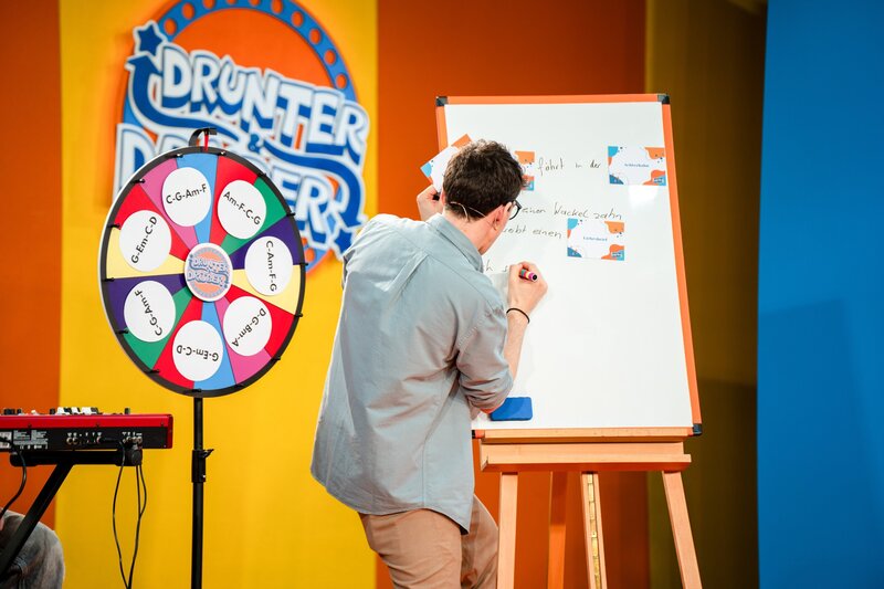 Heute wird es bei "Drunter & Drüber" musikalisch! Christoph Hirschler und seine Band begrüßen den jungen Musiker NOA, der seit seinem 6. Lebensjahr Musik macht. In der "Lieder-Schreib-Challenge" zeigt NOA gemeinsam mit Christoph und den Kindern, wie man spontan einen Song schreibt. Mit lustigen Wörtern wie "Dinosaurier", "Achterbahn" und "Fingernagel" entsteht ein echter Ohrwurm! Aber das ist nicht der einzige Ohrwurm in der Show. Zum Abschluss singt NOA mit der "Drunter & Drüber Band" und Christoph seinen Hit "California".