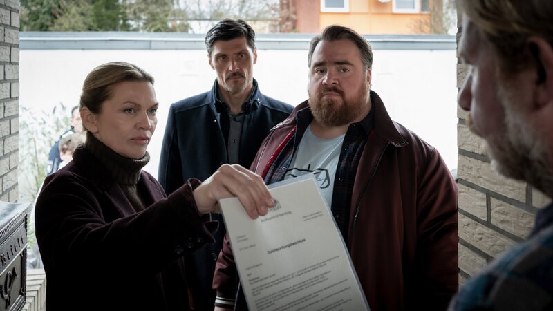 • Helen Dorn (Anna Loos, l.), Dr. Nedjo Kristic (Stipe Erceg, 2.v.l.) und Weyer (Tristan Seith, 2.v.r.)