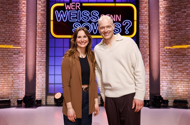 Die Kandidat:innen dieser Sendung: Die Rennrodlerin und Olympiasiegerin Julia Taubitz (l.) und der Rennrodler und Olympiasieger Max Langenhan (r.).Bild: © ARD/NDR/UFA SHOW & FACTUAL/Morris Mac Matzen