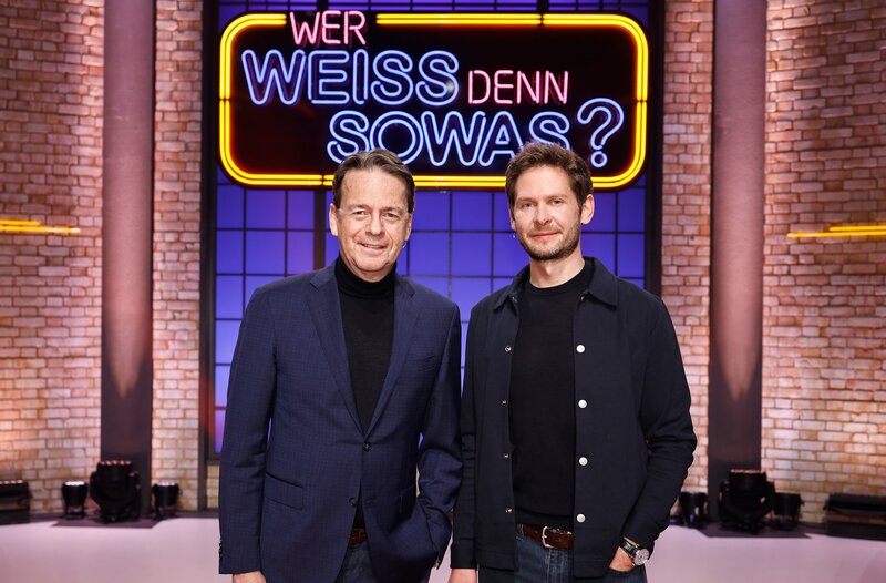 Moderator Kai Pflaume (r.) mit Rateteam-Kapitän Bernhard Hoëcker (l.) und dem Sportjournalist, Fernsehmoderator und ehemaligen Eiskunstläufer Rudi Cerne (M.).Bild: © ARD/NDR/UFA SHOW & FACTUAL/Morris Mac Matzen