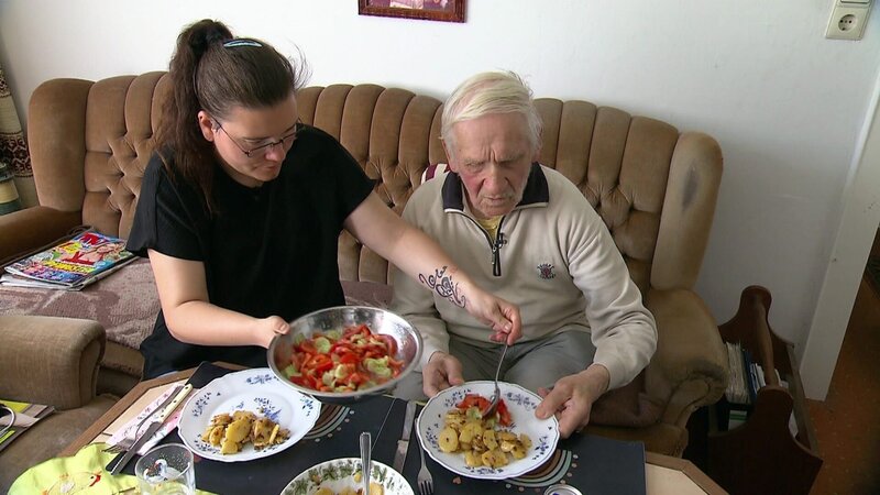 • In Bremen besucht Sabrina (41) wieder ihren guten Freund Wilfried (85), der ihre Unterstützung im Alltag sehr zu schätzen weiß - ob beim gemeinsamen Kochen oder bei der Vereinbarung von Online-Terminen.