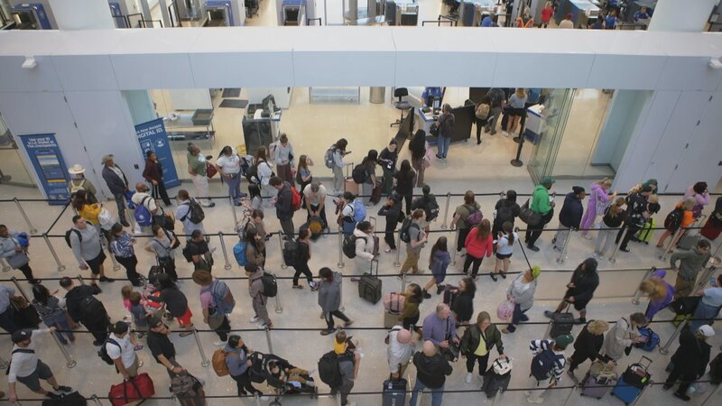 Passagiere warten in der Sicherheitskontrolle am Flughafen von New Orleans.