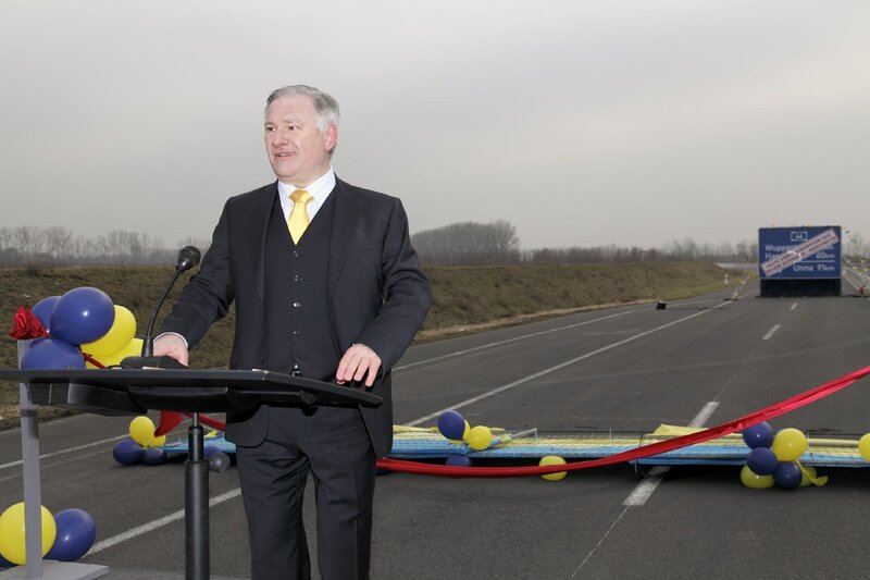 Innenminister (Armin Dallapiccola) Die Helden vermasseln dem Innenminister seine Feierliche Autobahn-Eröffnung.