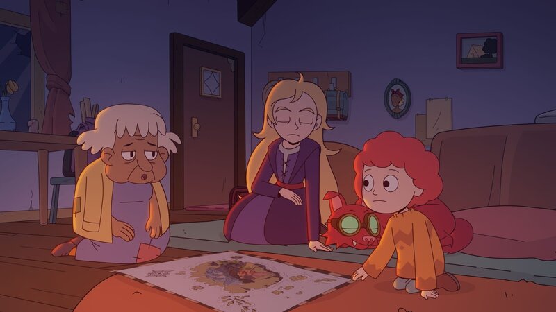 Hildur erklärt auf einer Karte die Gefahren, die das Team auf der Reise zum Berg Hekla erwarten.