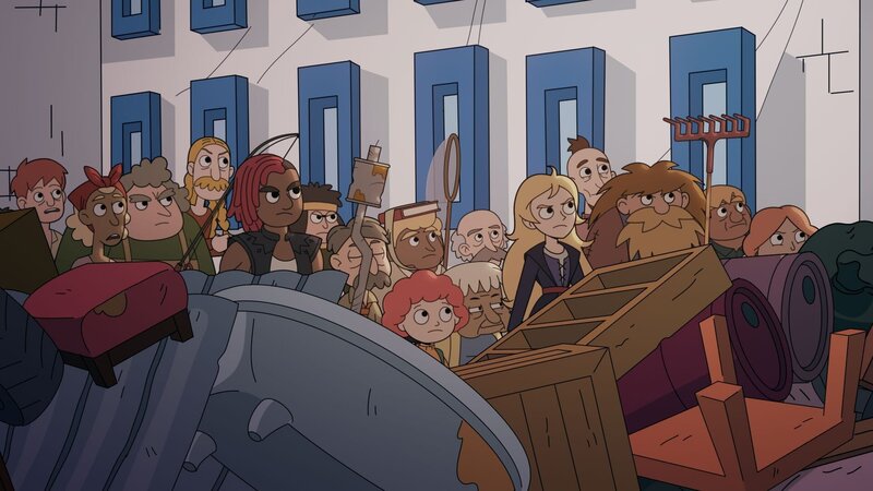 Die Dorfbewohner und Ormhildur sind bereit, gegen die riesige Gruftkatzenmutter zu kämpfen und das Dorf zu schützen.