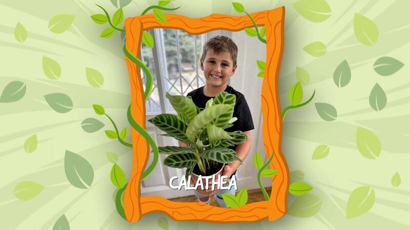 • Thamos mit seiner Lieblingspflanze Calathea.