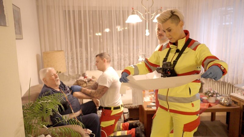 • V.l.: Patient Dieter, Rettungssanitäter Daniel, Rettungssanitäter Lukas, Doc Caro