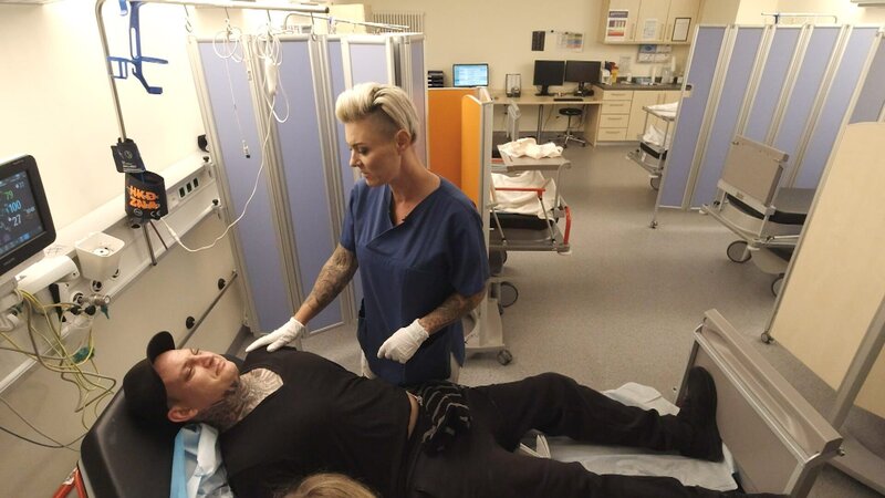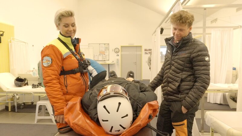 Doc Caro behandelt einen bewusstlosen Skifahrer, der betrunken gestürzt ist, und thematisiert unterschätzte Magenschmerzen sowie Schleudertrauma-Risiken nach einem Auffahrunfall.