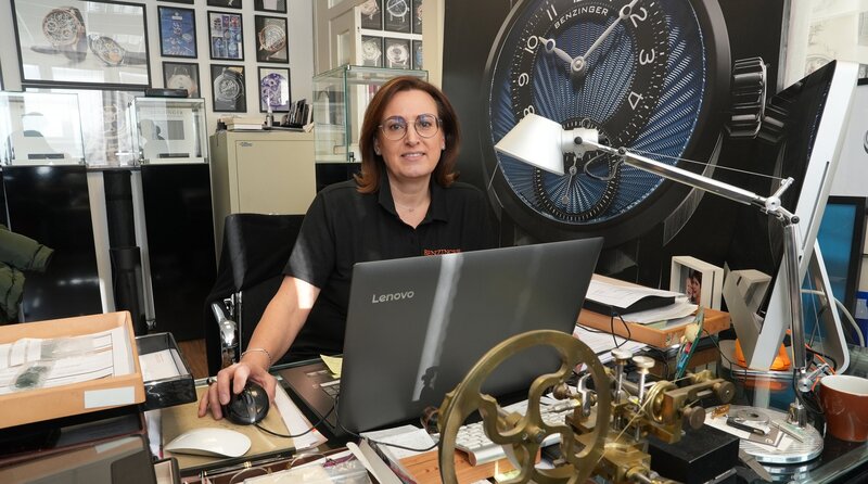 Steffi Benzinger in der Kommunikationszentrale der Pforzheimer Uhrenwerkstatt.