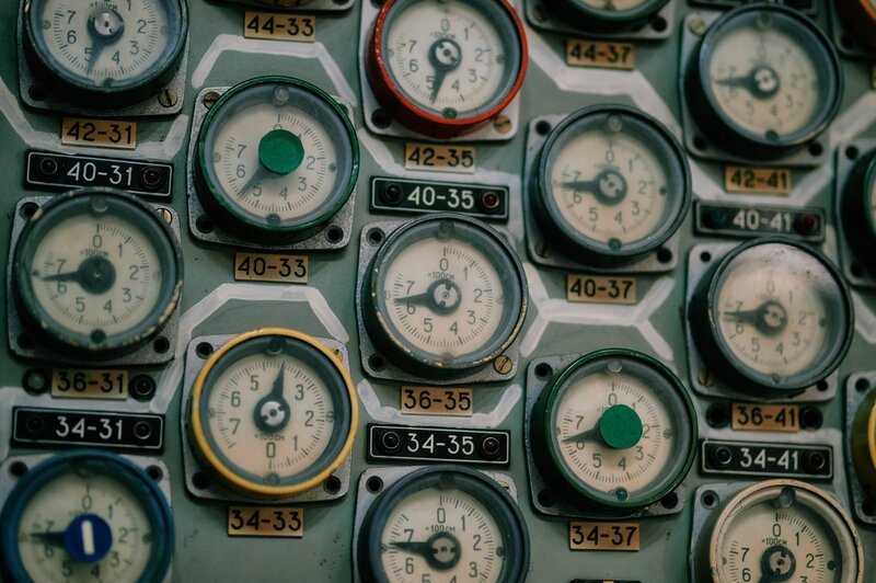 Messanzeigen für die Reaktorsteuerstäbe im Kernkraftwerk Tschernobyl.