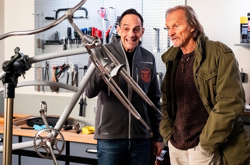 Von links: Mike (Harry Blank) hofft, dass er Sascha (Eisi Gulp) davon überzeugen kann, ein weiteres Rad zu entwerfen.