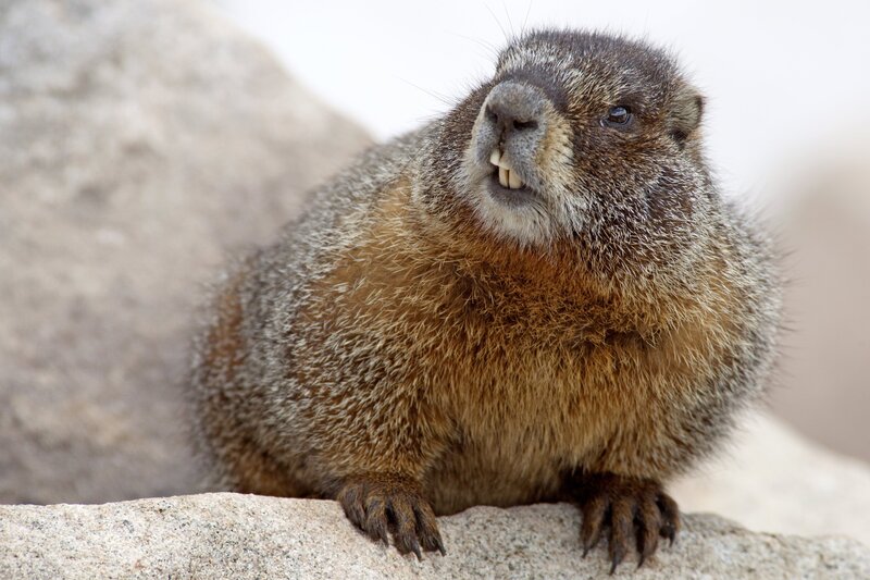 Ein Murmeltier hat seinen Bau in der Straße - in Nordamerika ist alles möglich.