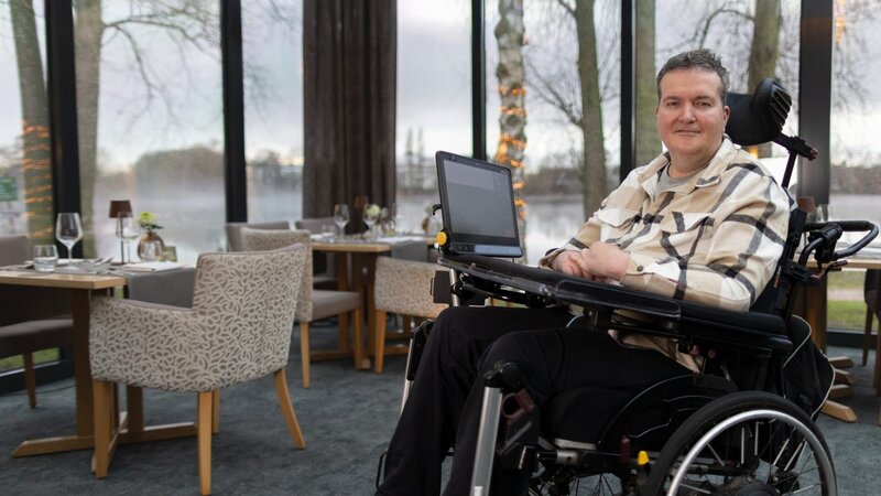 Nach drei Schlaganfällen vor 16 Jahren lebt Andreas Pennings in seiner Wohnung mit 24-Stunden-Assistenz. Er hat das Locked-in-Syndrom: Die Betroffenen sind bei vollem Bewusstsein, können jedoch ihren Körper nicht mehr bewegen. Er teilt sich über das Augensteuerungssystem "Tobi" mit. Damit kann er E-Mails schreiben, im Internet surfen und sein automatisiertes Smarthome steuern. Eine künstliche Stimme gibt seine Sätze wieder.