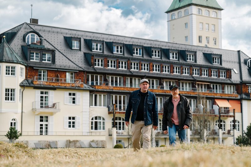 Die Freunde Sebastian Bezzel und Simon Schwarz, bekannt aus den "Eberhofer"-Krimis, residierten am Fuß des oberbayrischen Wettersteingebirges im Luxushotel "Schloss Elmau". Sie schauten hinter die Kulissen des Resorts und lernten dabei viel über die bewegte kulturelle und politische Geschichte des Hauses. Zudem schlüpften die beiden Schauspieler in die Rollen der Mitarbeitenden am Empfang, der Conciergerie, des Zimmerservices und der Küche.