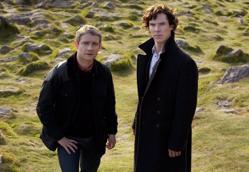 Sherlock Holmes (Benedict Cumberbatch), Dr. John Watson (Martin Freeman, r.)
