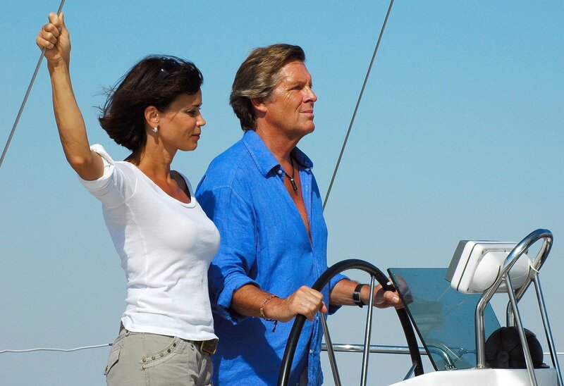 Während Isabella (Patricia Wolf) in der Küche zu tun hat, entdeckt Jan (Sigmar Solbach), dass die Baupläne seiner Yacht verändert wurden.