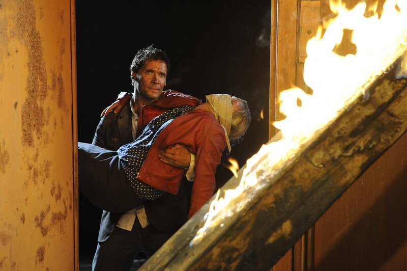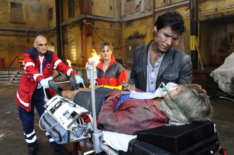 • Glück im Unglück: Alexander (Paul Grasshoff, l.) schafft es, Mia (Josephine Schmidt, r.) aus den Flammen zu retten ...
