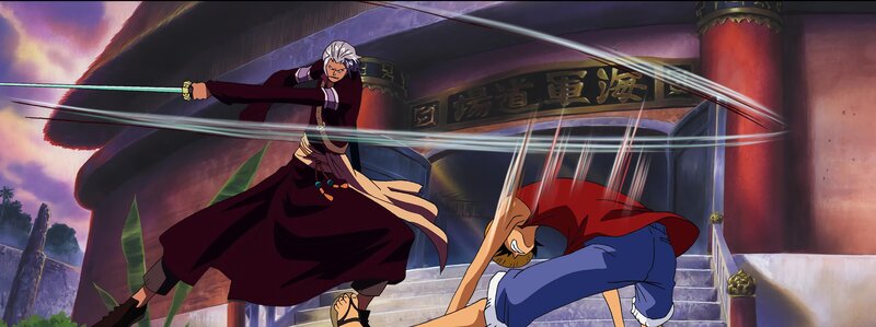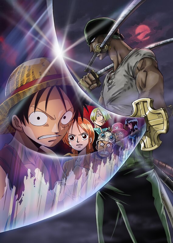 Die Strohhutpiraten sind auf der Insel Aska auf der Suche nach dem Schwert der Sieben Sterne - eines der größten Schätze der Grand Line. Doch alle hundert Jahre soll ein Fluch dazu führen, dass ein roter Mond über Aska erscheint. Das Schwert setzt dann alles daran, dass sich dieser Mond in einer blutroten See spiegelt. Wovon geht mehr Gefahr für die Strohhutbande aus: Vom Schwert oder von der Marine, die es ebenfalls sucht?