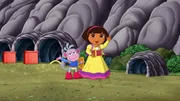 Dora und Boots betreten das Märchenland. Boots wird von einer Hexe mit einem Schlaf-Fluch belegt der nur durch die Umarmung einer echten Prinzessin gebrochen werden kann. Es gibt keine echte Prinzessin im ganzen Märchenland. Deshalb muss Dora eine werden. Um das zu schaffen muss sie den roten Ring holen. Die großen Steine zum Singen bringen, dem Wintertal Frühling bringen und schlussendlich den Mond zu König und Königin bringen.