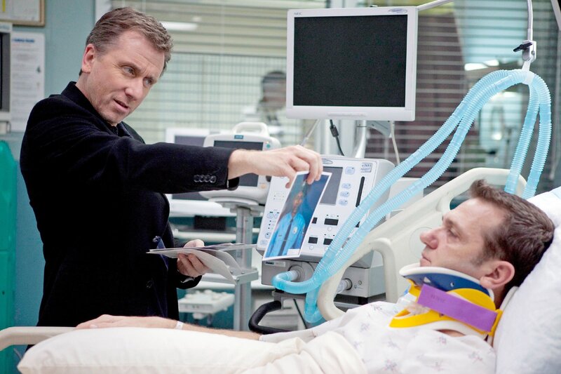 Der Polizist Nick (Karl Makinen, r.) wurde angeschossen und hat dabei seine Stimme verloren. Um den Täter zu identifizieren zeigt Dr. Cal Lightman (Tim Roth) ihm Fotos von Verdächtigen und beobachtet dabei die Reaktion seiner Pupillen.