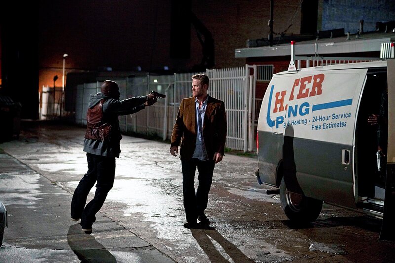 Drogendealer Little Moon (Keston John, l.) ist der festen Überzeugung, dass Dave Burns (Max Martini) seinen Vater ermordet hat. Aus Rache bedroht und entführt er ihn.