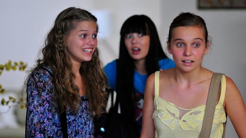ARD/NDR EMMAS CHATROOM, FOLGE 8, "Kleiner Bruder, großes Problem". Erschrocken merken die Mädchen, dass Allys kleiner Bruder dabei ist, ihr Chatroom Geheimnis aufzudecken. v.l.: Emma (Sophie Karbjinski), Jackie (Charlotte Nicdao), Ally (Marny Kennedy)