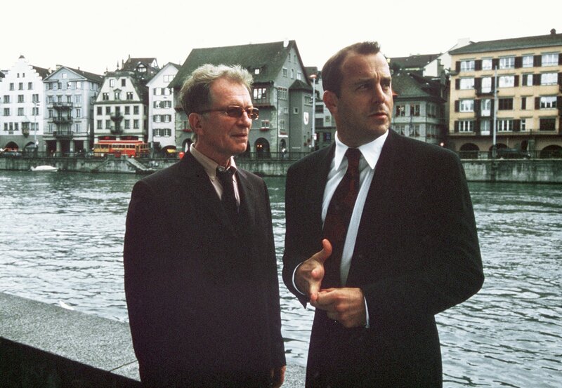 • Sicherheitschef Mortier (Jürgen Schornagel, re.) soll Michael Mühlhausen (Heino Ferch) umbringen, weil er finstere Machenschaften seiner früheren Chefs aufgedeckt hat.