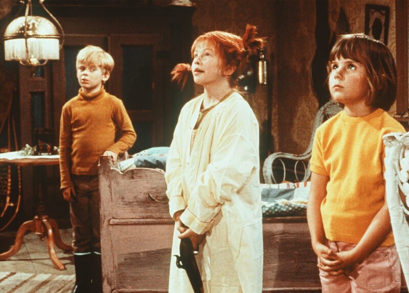 Ein Paar Füße in ausgelatschten Schuhen, die gemütlich auf einem Kopfkissen ruhen - das ist das Erste, was Tommy und Annika von ihrer neuen Nachbarin zu sehen bekommen, als sie in der Villa Kunterbunt nachsehen, ob es stimmt, dass dort ein merkwürdiges Mädchen eingezogen ist. Tatsächlich, Tante Prusselius, die ihre Nase immer in Dinge steckt, die sie nichts angehen, hatte Recht, als sie den Polizisten erzählte, in der Villa Kunterbunt wohne jetzt ein Mädchen allein - ohne Eltern. Gesellschaft leisten ihr nur "Herr Nilsson", der niedliche Affe, und das Pferd "Kleiner Onkel". Eltern hat sie natürlich auch: Ihr Vater Efraim Langstrumpf ist König von Taka-Tuka-Land. Und ihre Mutter ist im Himmel. Aber wozu braucht Pippi Eltern? Sie kommt alleine klar. Ausgerüstet mit einem Koffer voller Goldstücke und Riesenkräften, kann ihr niemand etwas tun, weder Tante Prusselius, die sie ins Kinderheim stecken will, noch die Polizisten, die sie verhaften wollen, noch die beiden Gauner, die hinter Pippis Gold her sind. Wer kann einem schon etwas anhaben, wenn man wie Pippi ein ganzes Pferd und mehr stemmen kann? Pippi, Annika und Tommy erleben einen herrlichen Sommer voller Abenteuer, bis eines Tages ein dicker bärtiger Mann auf Pippis Terrasse steht. Efraim Langstrumpf, König von Taka-Tuka-Land und Kapitän der Hoppetosse, ist gekommen, um seine Tochter, Prinzessin Pippilotta Rollgardina Schokominza Efraimstochter Langstrumpf, abzuholen in sein Reich.