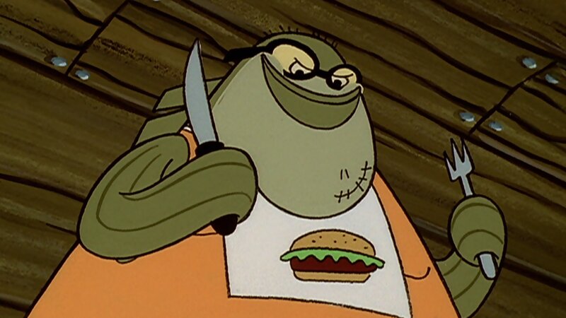 Der gefürchtete Bubblebass kommt in die Krosse Krabbe, um SpongeBobs berühmten Krabbenburger zu testen. Und tatsächlich findet er einen Makel - Sponge hat angeblich die Gürkchen vergessen. Das stürzt den Schwamm in eine schwere Krise. Völlig verwirrt zieht er sich aus der Klopsbraterei zurück und vegetiert konfus vor sich hin.