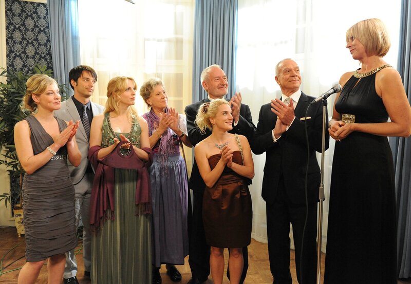 ARD STURM DER LIEBE FOLGE 1229, am Donnerstag um 15:10 Uhr im ERSTEN. André (Joachim Lätsch, 2.v.r.), Hildegard (Antje Hagen, 2.v.l.) und Alfons (Sepp Schauer, l.) sind irritiert, als Tanja (Judith Hildebrandt, r.) das Los mit dem "Dinner für zwei" zieht.