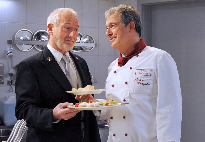 ARD STURM DER LIEBE FOLGE 1230, am Freitag um 15:10 Uhr im ERSTEN. Alfons (Sepp Schauer, l.) bittet André (Joachim Lätsch, r.), für ihn und Hildegard zu kochen.
