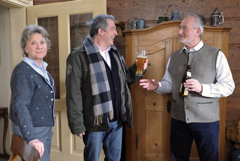 ARD STURM DER LIEBE FOLGE 1246, am Dienstag um 15:10 Uhr im ERSTEN. André (Joachim Lätsch, M.) muss sich eine neue Bleibe suchen. Hildegard (Antje Hagen, l.) lässt sich - sehr zu Alfons (Sepp Schauer, r.) Leidwesen - dazu überreden, André für eine Nacht Asyl zu gewähren.