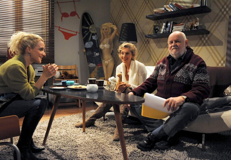 • Viola (Wookie Mayer, M.) und Franz (Wolfgang Freundorfer, r.) wollen sich um Fabien kümmern, solange Tanja (Judith Hildebrandt, l.) weg ist.