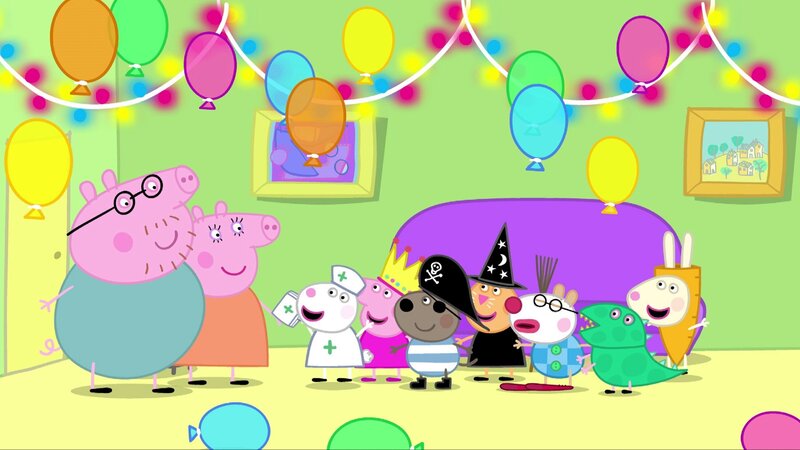 Peppa und Schorsch haben einige zu ihrer Kostümparty eingeladen. Mit dabei sind Luisa Löffel, Pedro Pony, Molli Mieze, Klausi Kleff und Luzi Locke (v.l.n.r.), die sich tolle Verkleidungen haben einfallen lassen!