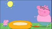 Heute ist ein sehr heißer Tag. Peppa und Schorsch wollen in Matschpfützen herumspringen, aber die sind alle ausgetrocknet. Mama Wutz schlägt vor, stattdessen Badesachen anzuziehen und im Planschbecken zu baden. Sie kauft jedem ein Eis.