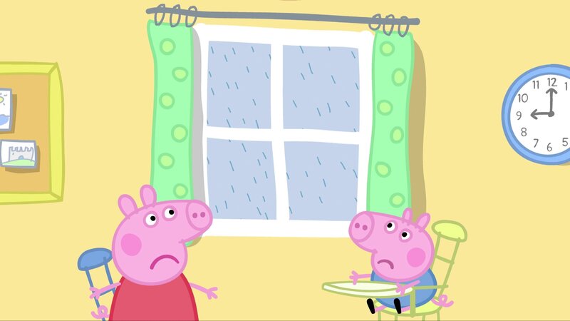 Peppa und Schorsch sind traurig: Immer wenn es draußen regnet, können sie nicht vor die Tür.