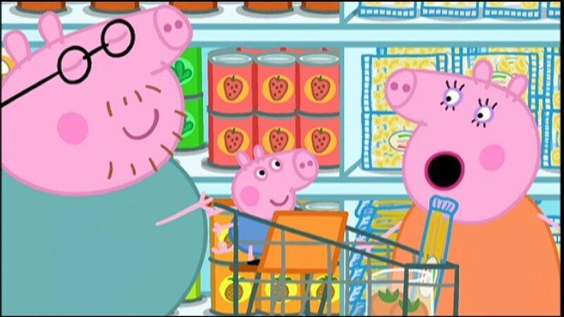 Mama Wutz, Papa Wutz, Peppa und Schorsch gehen in den Supermarkt. Schorsch sitzt im Wägelchen, während Peppa die Besorgungen laut Einkaufsliste zusammensucht. Bald haben sie alles, was sie brauchen, sowie etwas, das gar nicht auf der Liste stand.