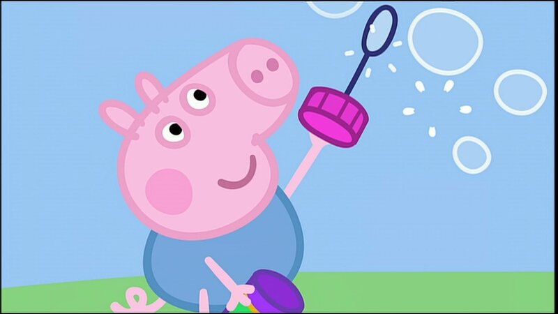 Peppa und Schorsch lieben Seifenblasen. Und weil Peppa gar nicht genug davon bekommt, die fliegenden Kugeln platzen zu lassen, brauchen die beiden jede Menge Seifenlauge. Gut, dass Papa weiß, wie man neue Seifenlauge macht.