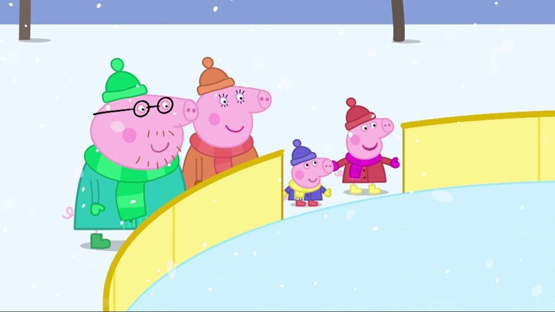 Peppa und Schorsch gehen heute zum ersten Mal Schlittschuhlaufen. Peppa fällt immer wieder hin, aber Papa Wutz erklärt ihr, dass sie sich keine Sorgen machen muss, denn jeder fällt hin, wenn er zum ersten Mal Schlittschuhlaufen ist. Mama Wutz bringt ihr daraufhin das Laufen auf dem Eis bei und bald hat Peppa viel Spaß. Und auch Schorsch scheint ein geborener Schlittschuhläufer zu sein.