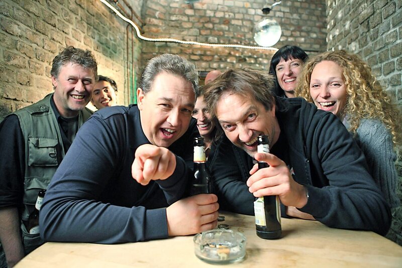 Letzte Einstellung vor Drehschluss am fiktiven Set von "Triple Wixx": Bastian (Bastian Pastewka, l.) in seiner Rolle als Inspector "Very Long" und Oliver Kalkofe (Oliver Kalkofe, r.) als Chief Inspector "Even Longer" ...