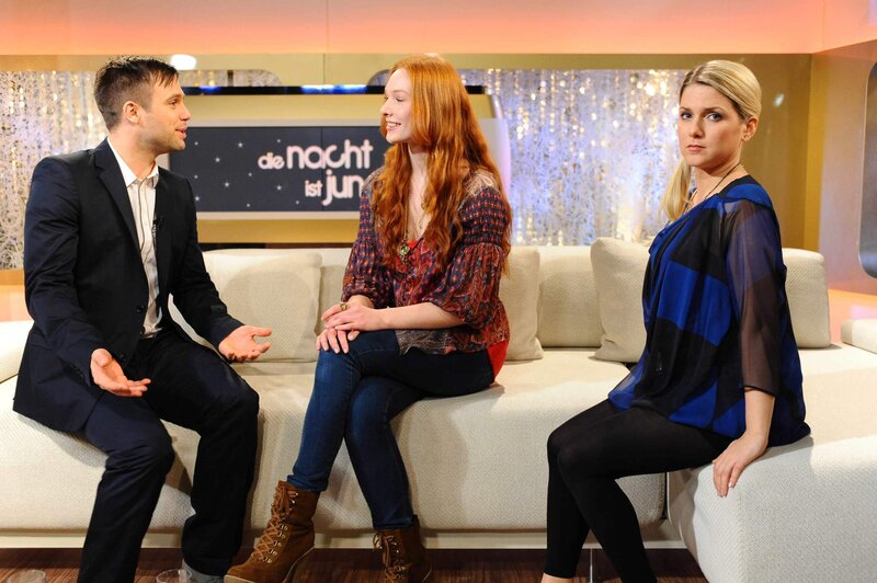 Tom macht die Art, wie Anna (Jeanette Biedermann, r.) in der Sendung von Talkmaster Michael Jung (Ole Tillmann, l.) vorgeführt wird, sehr wütend ...