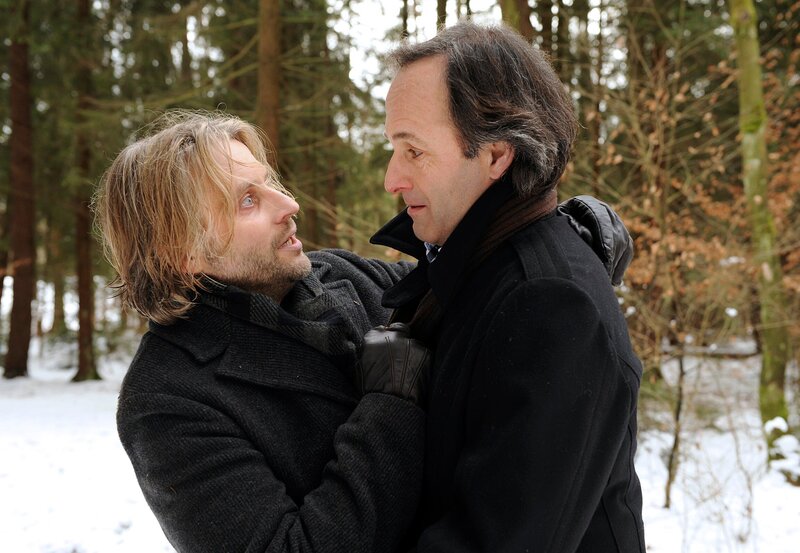 • Michael (Erich Altenkopf, l.) hat die Nacht hilflos im Wald verbracht und ist überglücklich als er auf Curd (Holger Gotha, r.) trifft.