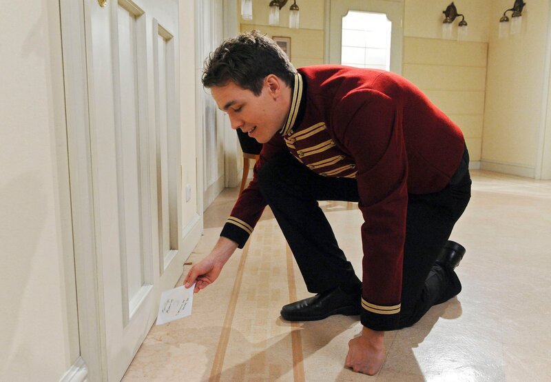 • Weil Sybille die Tür nicht aufmachen will, schiebt Xaver (Jan van Weyde) ihr die CD unter der Tür durch.